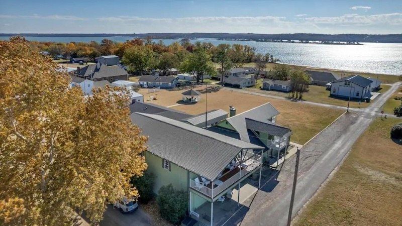 Beautiful Lake Texoma home with gorgeous view of the lake! Enjoy sitting on one of the many balcony/patios enjoying the view of the lake! Play outdoor games in the huge front yard or sit in the hot tub with a fire going in the large outdoor fireplace. This house has several living spaces, a large dining area and coffee bar area. There are 3 bedrooms downstairs and 1 bedroom upstairs with a 2nd room being used as a bedroom. There is also a huge insulated 4 car garage/shop. Above the garage is a giant game room with a kitchenette and full bathroom. There are 2 balconies on each side of the game room. Great place to gather with friends and family. This house is a short walk to sandy beaches and the boat ramp to launch your boat! There is an outdoor shower for when you get back from the beach. There is also an RV carport. The house is being used as a vacation rental with great rental history. The best part is everything in the house stays except a few personal items of the owners. This really is a great area of the lake to own a home!!