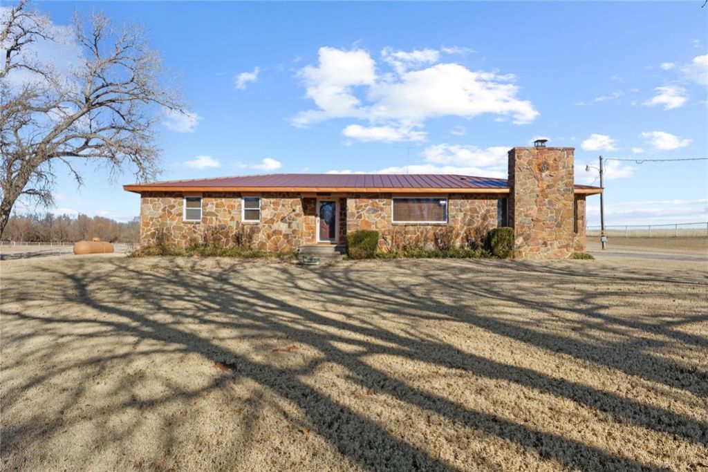 Welcoming & Tranquil Country Property on 3.76 Acres. Enjoy peaceful country living just 5 miles from town with this unique 3.76-acre property located in Washita County & within the Clinton School District. The primary home (1,908 SF) is a charming rock & brick home featuring a huge living area with floor-to-ceiling rock fireplace with insert, creating a warm & inviting centerpiece. The spacious kitchen offers a gas cooktop & wall oven, abundant cabinet & counter space, & large breakfast bar. The adjoining dining area easily accommodates an 8-person+ table, making it ideal for gatherings. The open kitchen & dining area flow into an oversized mud room with additional cabinetry & a utility sink. Laminate wood like flooring is in all wet areas, with carpet in the living room & bedrooms. Bedrooms are generously sized, with the primary suite offering a half bath & walk-in closet. Guest bedrooms provide excellent closet space as well. Step outside to a large, covered patio with wood deck & ramp, leading to a 40x60 two-car garage/barn, perfect for storage, hobbies, or livestock needs. The property has rural water, plus a water well for the grounds, and is fully enclosed with white pipe fencing. Bonus Income Opportunity with a second residence, currently rented for $550/month. The second home is a 14X72 Solitaire manufactured home offering 2 bedrooms & 2 baths, with updated plumbing, flooring throughout & new composition roof in 2025, well-maintained & in great condition.Note: The trailer's water supply is connected to the main house. ***Listing agent is owner of property.