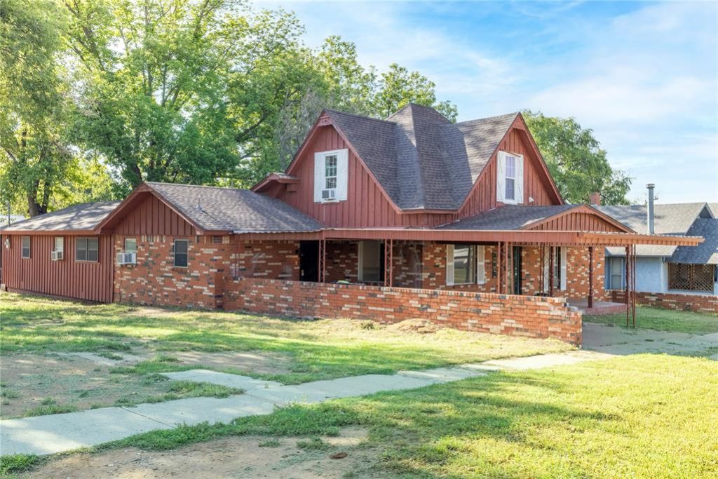 5 bedroom home for sale situated on 4 lots in Sayre, OK. Step into home that has as much unique character as it does square footage. Enjoy 2 living spaces/dens. The natural light in the front living area is amazing and will give you views of the Oklahoma sunsets. Kitchen and dining area is full of personality with a bar, showcasing family recipes, a hutch and unique flooring. Cook family meals on the gas cook top. The upstairs has 2 bedrooms and an additional space/sitting area that would be great for almost anything. Laminate flooring throughout most of the home. Primary bedroom has built in entertainment center/shelves and primary bathroom has a deep tub and shower combo along with an electric fireplace. Tons of storage in each room with room closets and an additional space that has a kitchen sink and cabinets and counter space. The backyard has so much to offer with pecan trees shading the area and a large covered porch. 2nd bathroom has tile and a walk-in shower and trendy light fixtures. Also new buyers will enjoy-2 car carportFenced back yardUnderground storm shelter12 x 16 shed/shopAdditional shedPecan treesWhat a rare find in this large home with 5 bedrooms and 3 bathrooms.