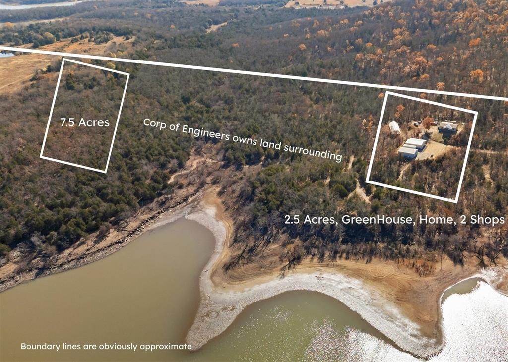 Are you looking to hunt, fish & garden every day? Utilize this lake front gated property just minutes from Krebs / McAlester with an above average income that has been established ready for a new owner. There's two parcels - the home, two shops, greenhouse on 2.5 acres & then a separate 7.5 acre parcel that both adjoin the Corp of Engineers land to the lake. Current license with OMMA to transfer to an eligible entity along with everything needed for a successful operation. This is an opportunity to truly spend your days doing what you love at home.