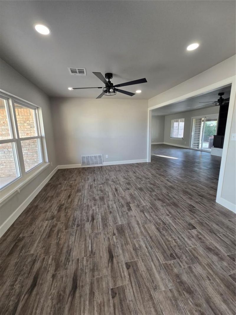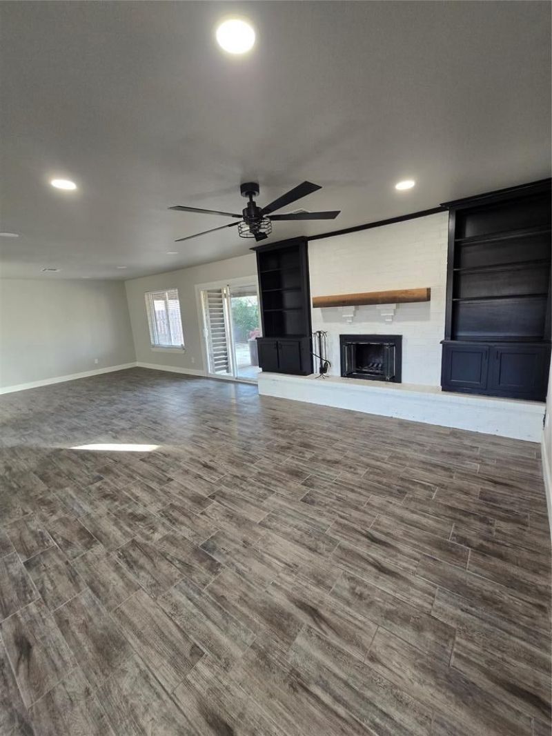 COMPLETELY REMODELED!Come see this completely remodeled home with plenty of open space! This home features brand new ceramic wood-like tile from the dining room that opens into the living room. Complete dark built ins surround the white brick gas fireplace. The kitchen is completed with brand-new granite counter tops and pops with matching ceramic backsplash. Lots of natural light. Laundry room is just off the living room/ kitchen. Out the back sliding patio door is a huge, covered patio complete with storm shelter as well as additional storage shed. On the other side of the house are the 3 spacious bedrooms complete with large closets with built in cabinets for storage. Master bedroom contains his and hers. This property will have a brand-new HVAC unit installed right prior to closing. Contact us today for your exclusive showing!