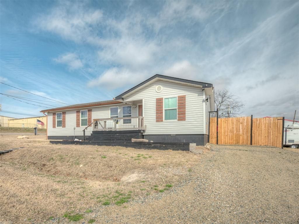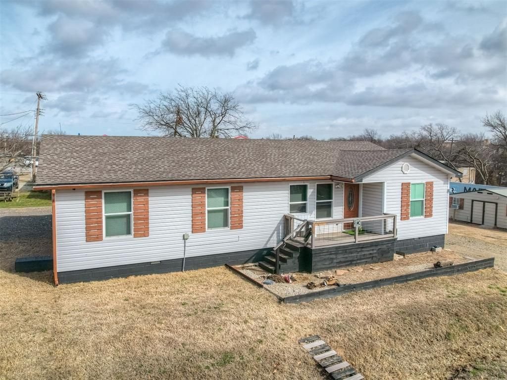 Welcome to this slice of heaven in small town living, on a large corner lot. This fully remodeled 4-bedroom, 2-bath beauty offers 1,600 sq. ft. of stylish, comfortable living space. This property blends country charm with modern comfort. The spacious kitchen/dining area flows seamlessly into the living room, creating an ideal space for entertaining or spending quality time with family. With neutral tones and contemporary finishes, this home offers both warmth and openness. The primary bedroom is spacious and features a walk-in closet with an en suite bathroom. The home offers a split bedroom floor plan for added privacy. The additional bedrooms provide flexibility for a home office, guest space, or playroom. Outside, enjoy Oklahoma's beautiful sunsets and sunrises from the large deck patio - perfect for entertaining or quiet mornings with coffee. The 24x12 shop/shed, fully equipped with electricity and air conditioning, offers endless possibilities for hobbies, or storage. The exterior has been freshly painted, and cedar shutters add the perfect finishing touch! Located just 1 block off of Hwy 77, this is a prime location within walking distance to shopping, restaurants and the local park (Chickasaw National Recreation Area). Don't wait-schedule your showing today!